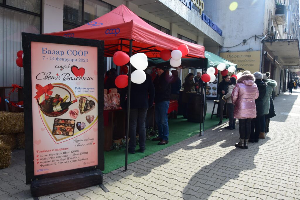 Базарът стартира на 7 февруари, вторник, като жители и гости на столицата се спират, за да разгледат, дегустират и закупят шоколадовите лакомства на „ШОКО КООП“ и вина с марката COOP под звуците на романтична музика.