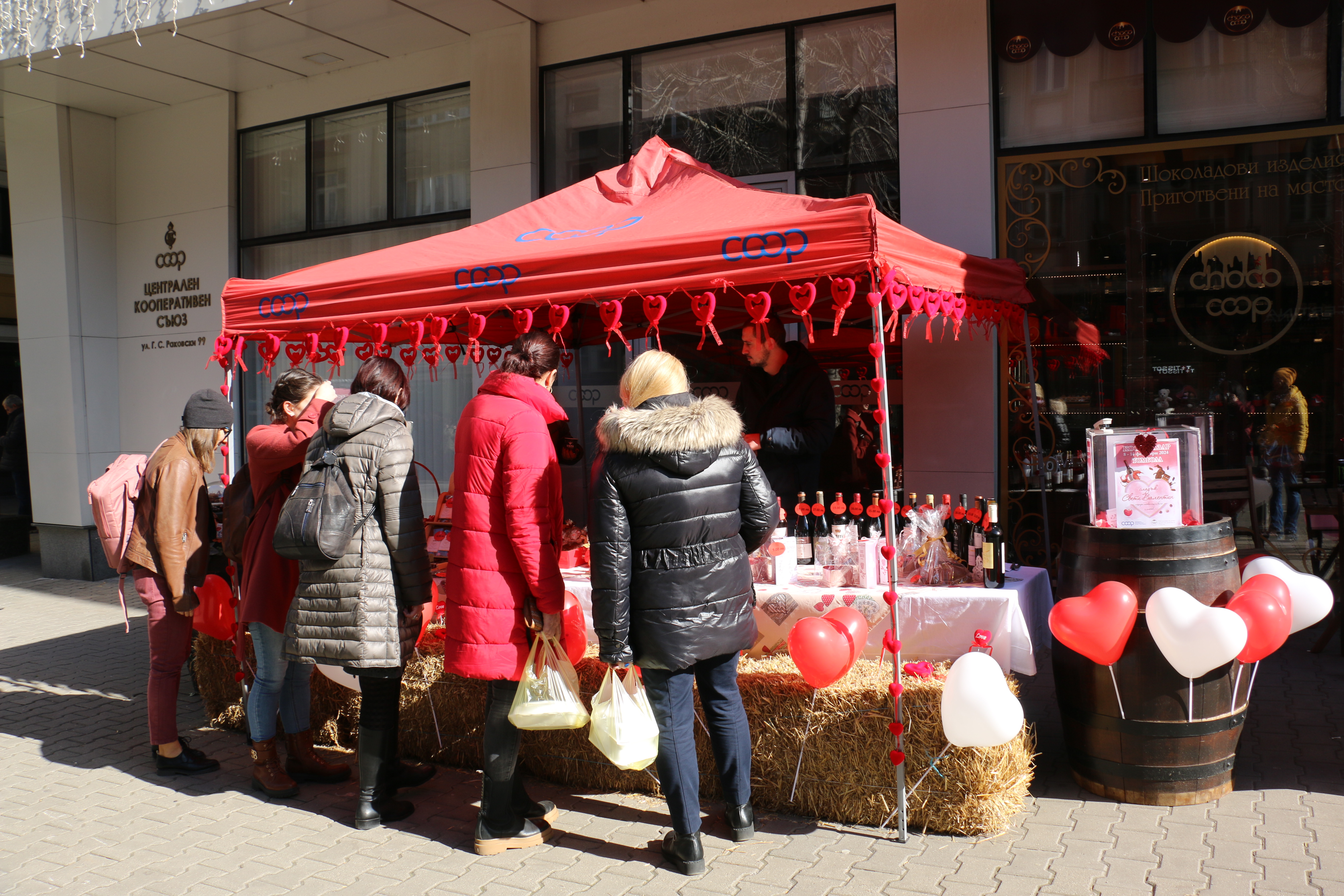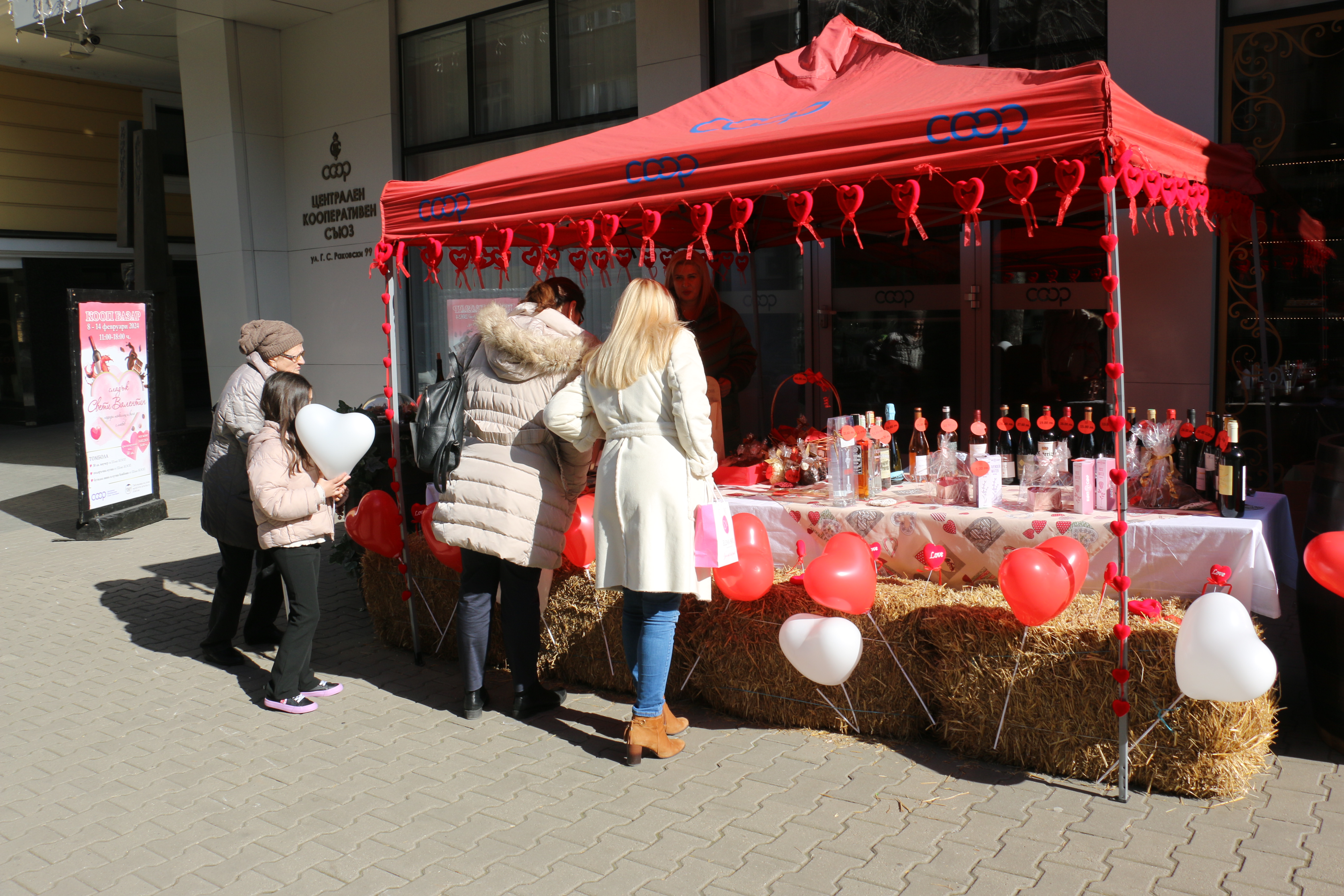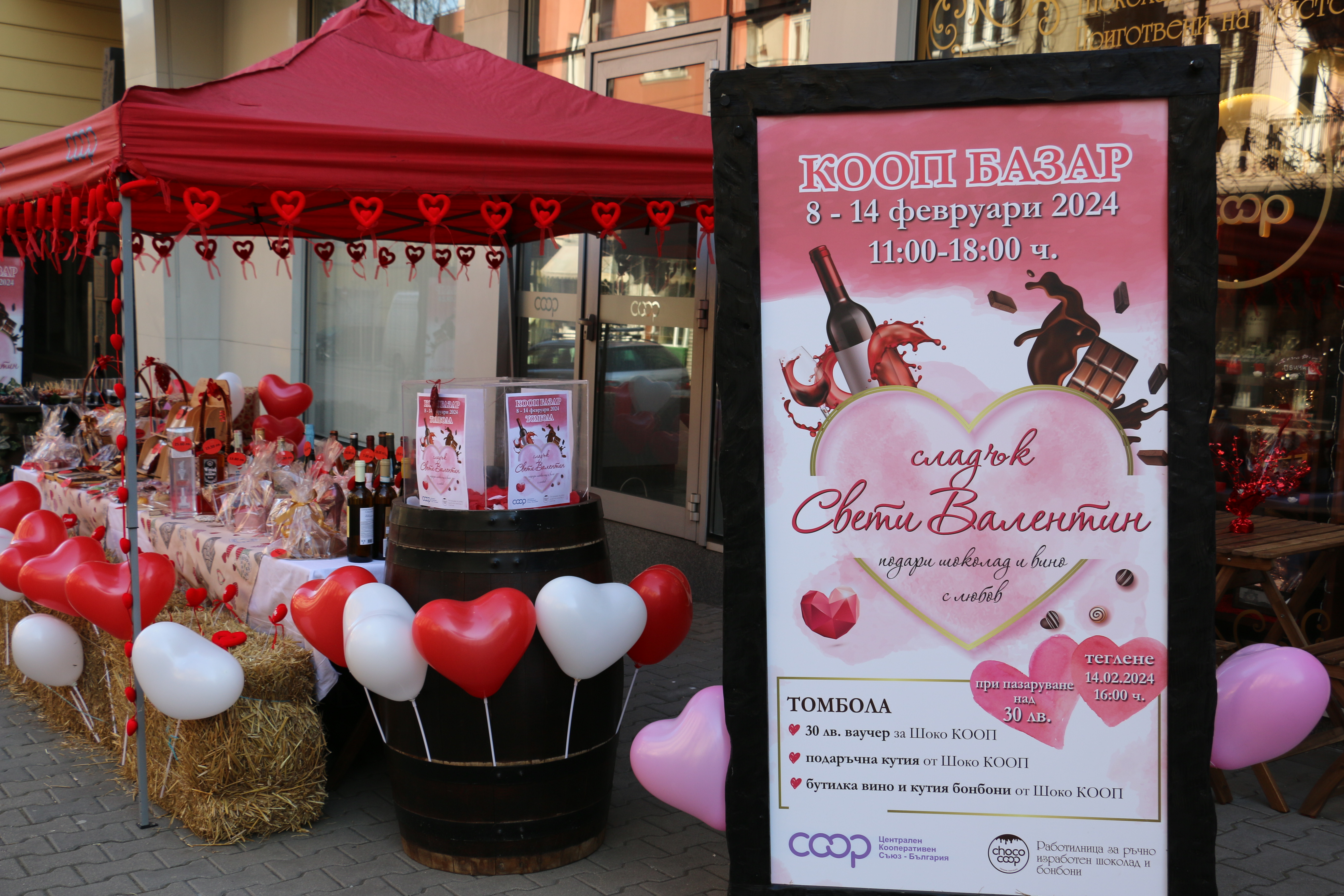 От днес до 14 февруари, всеки делничен ден от 11:00 до 18:00 ч., в КООП Зоната на столичната улица „Раковски“ №99 жителите и гостите на София ще могат да посетят КООП Базар „Сладък Свети Валентин – подари шоколад и вино с любов“.