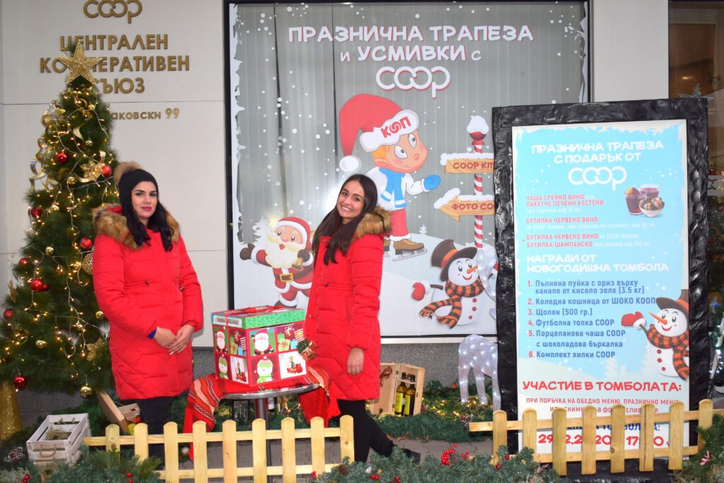 През най-празничния месец Централният кооперативен съюз и Ресторант КООП Клуб предложиха на своите клиенти многобройни кулинарни изкушения в атрактивния Kоледен кът в центъра на столицата. Всички, които поръчаха апетитни празнични менюта, бяха включени в специална коледна томбола с награди.