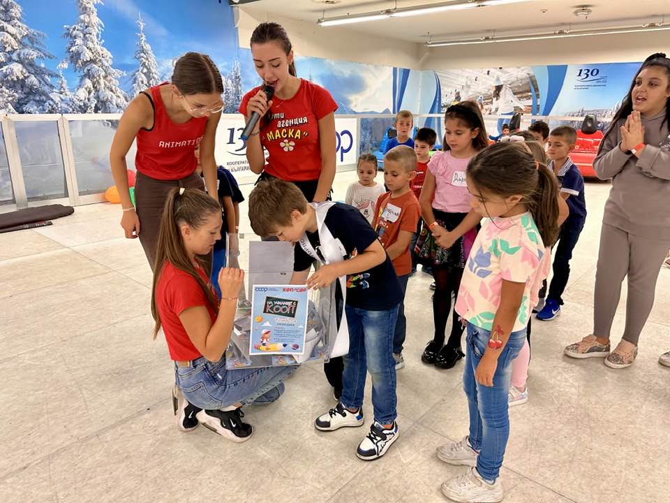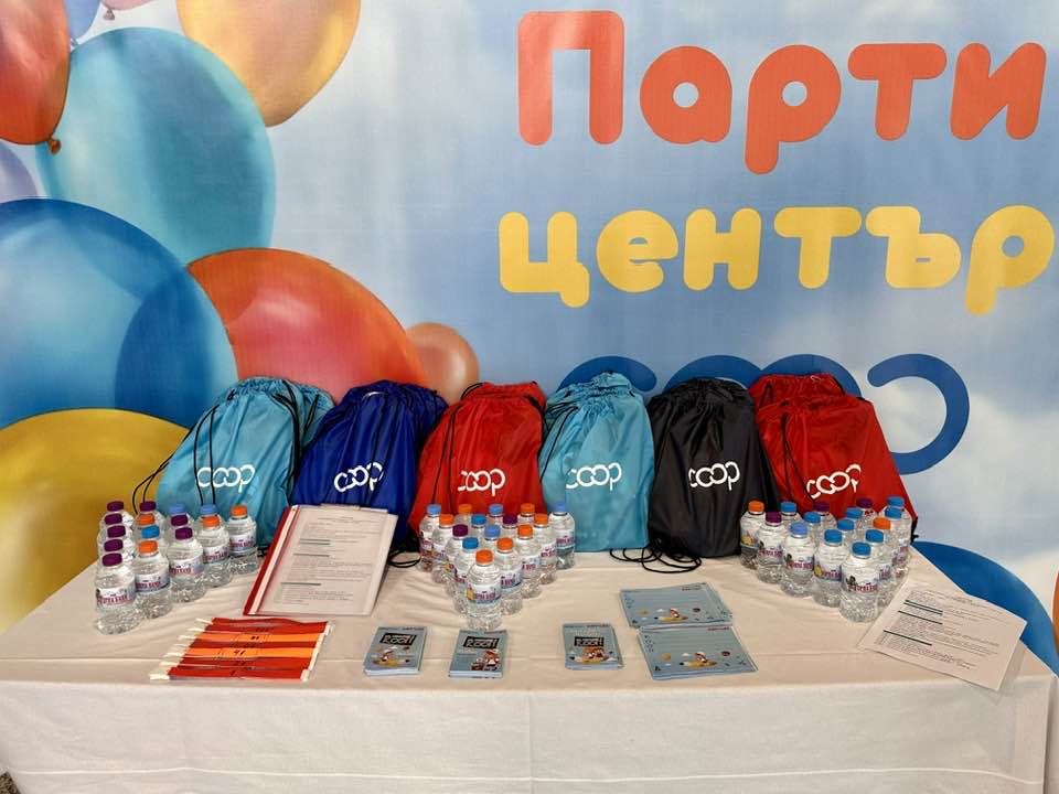 Всяко присъстващо дете участва в томбола със следните награди: ваучер за тържество в Парти център КООП, ваучер за Пързалка КООП и 3 брандирани раници с ученически пособия.
