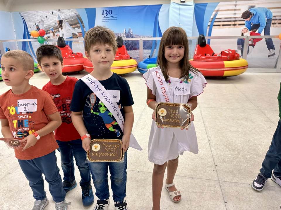 Дъждът на 14.09 не помрачи тържеството „На училище с КООП“. Красиво украсеният двор на Супермаркет КООП посрещна много ученици и родители, за които бяха подготвени специални изненади. По традиция се знае, че всичко класно е първокласно. За малките първолаци беше организирано специално ревю, на което бяха избрани Мис и Мистър КООП. Аплодисментите на усмихнатата публика определиха призьорите, които получиха почетни ленти.